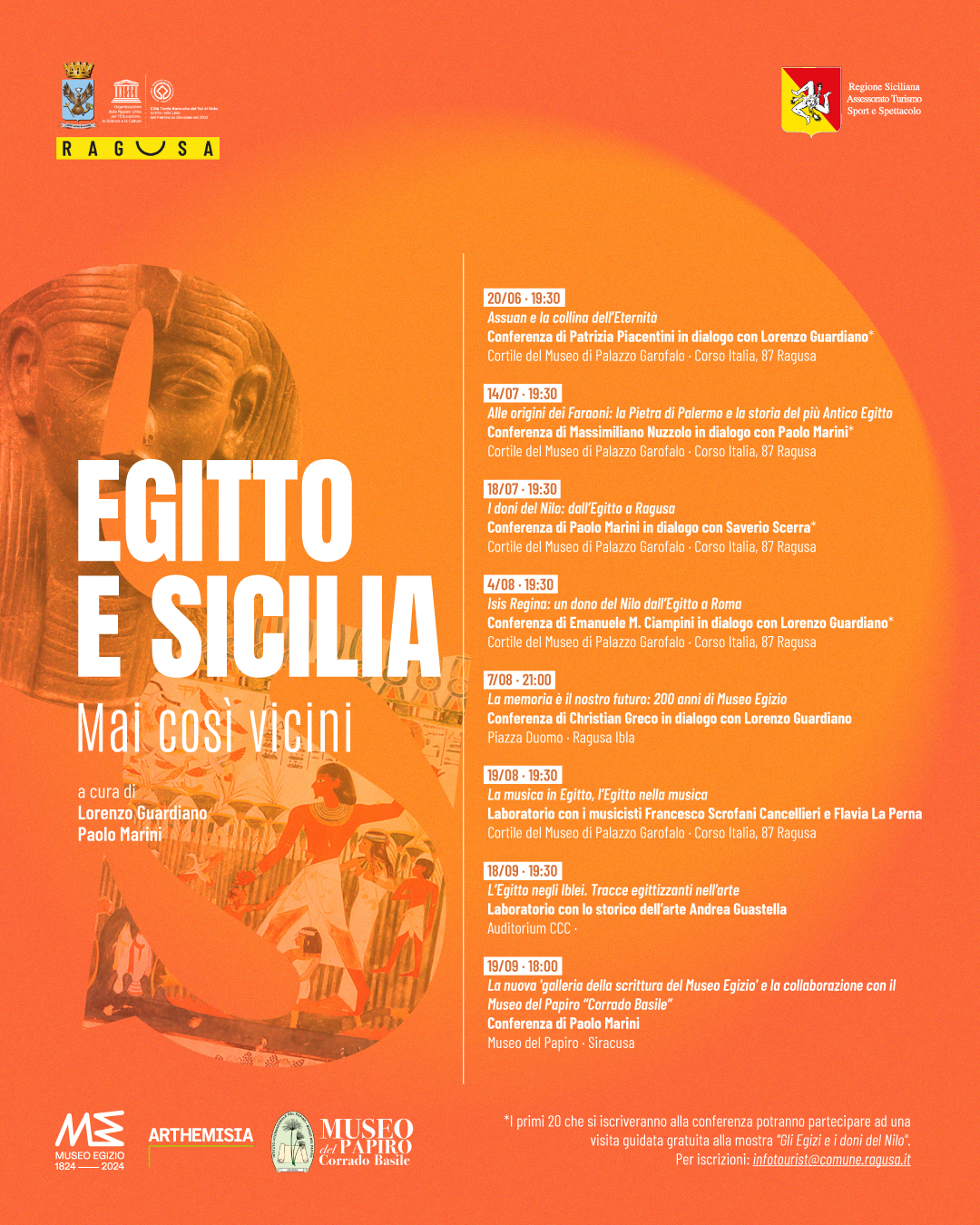 Il progetto è patrocinato dall'Assessorato al Turismo della Regione Siciliana e dal Comune di Ragusa, con la collaborazione del Museo Egizio di Torino, del Museo del Papiro di Siracusa e di Arthemisia.