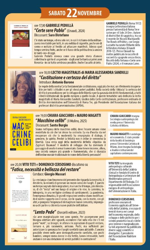 🕢 Ore 20:00 - Vito Teti e Domenico Cersosimo discutono su "Fatica, necessità e bellezza del restare", conduce Giorgio Massari