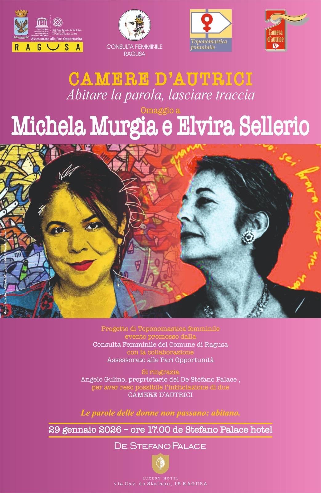 Si terrà giovedì 29 gennaio alle ore 17.00, al de Stefano Palace Hotel (via Cavaliere de Stefano, 15 – Ragusa), la presentazione di “Camera d’Autrice”, progetto di Toponomastica Femminile promosso dalla Consulta Femminile Comunale.